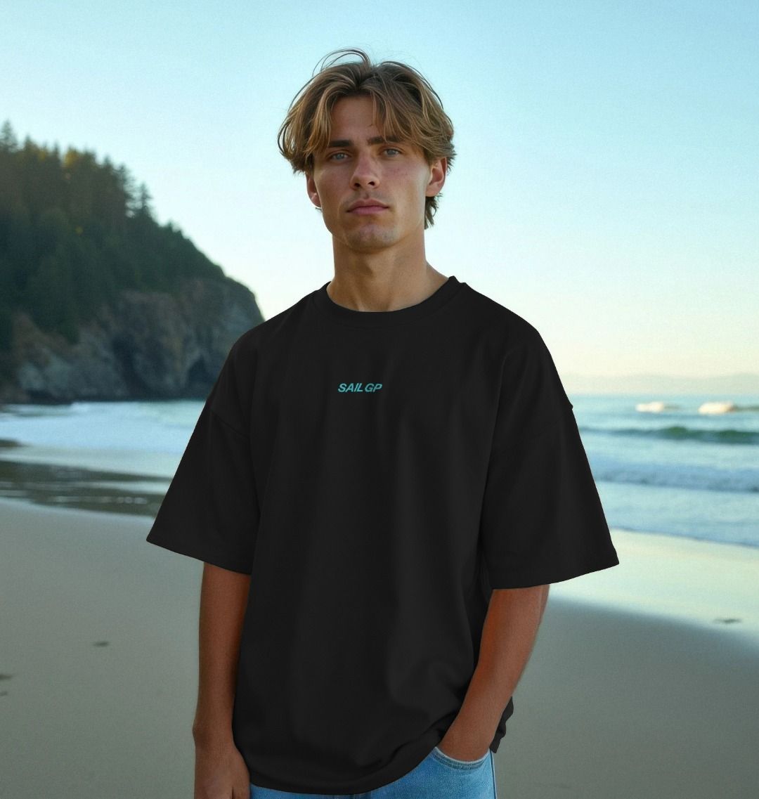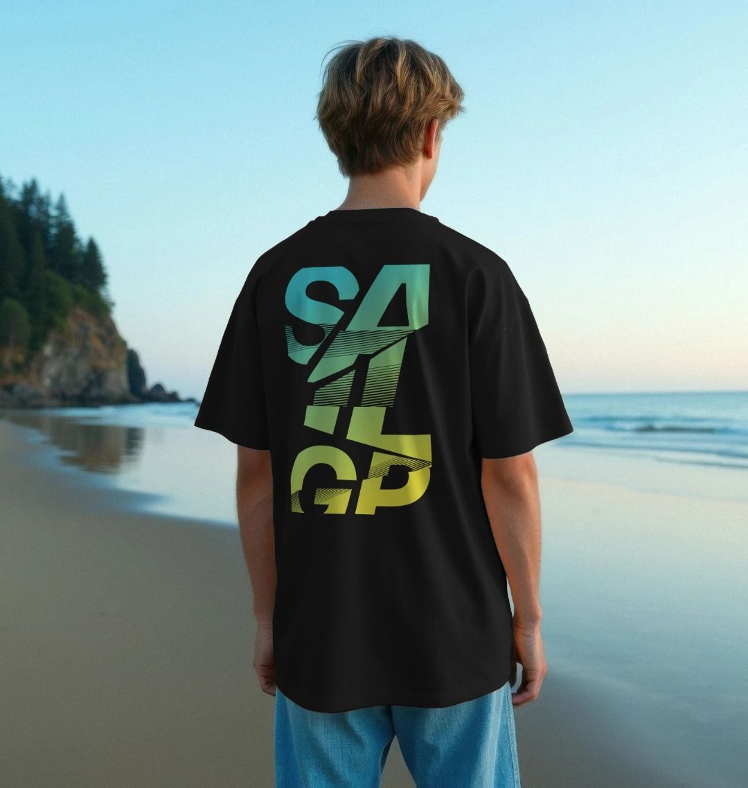A bold oversized tee with a SailGP backprint in a vibrant yellow-green gradient that reflects the power and momentum of high-speed racing.