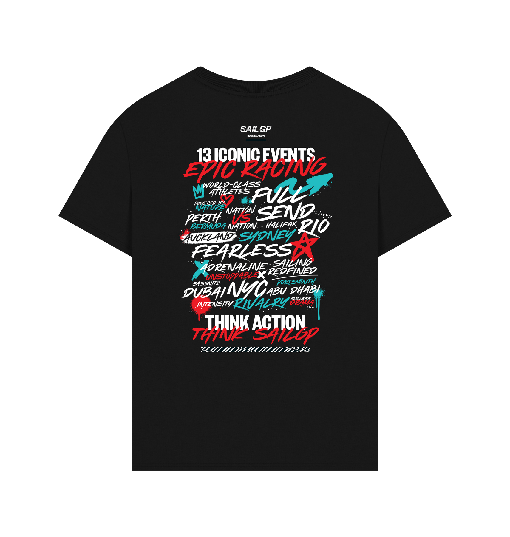 The official SailGP 2026 Season T-Shirt captures the energy of the Rolex SailGP Championship. 13 events, 5 continents, and iconic cities.