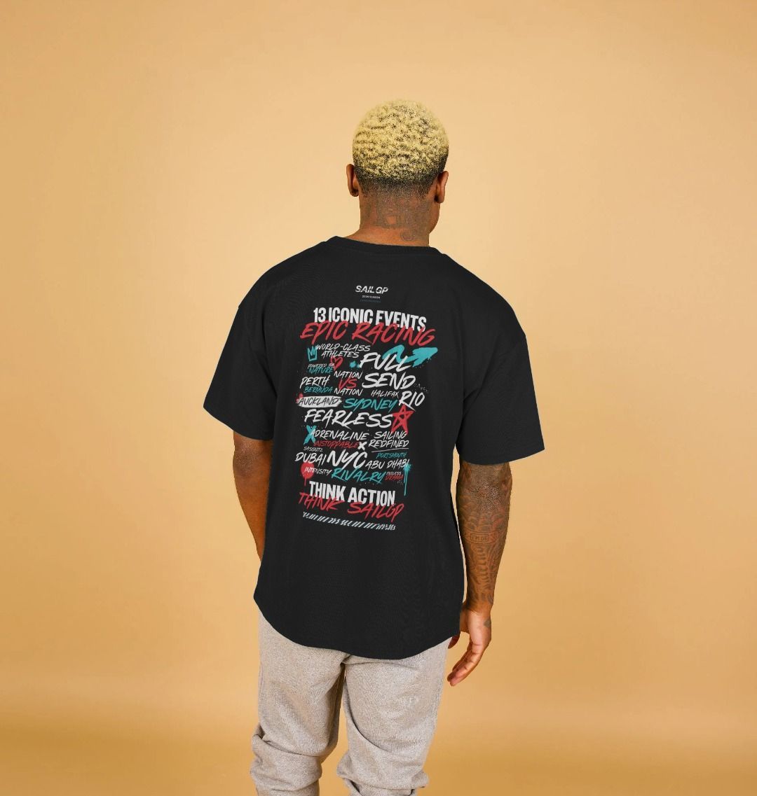 Crafted from organic cotton, it features a striking back print that celebrates SailGP’s global calendar.